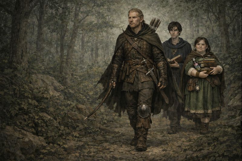 Soon the animal is dressed and cooking over a fire. As they eat, Ronan nods west, “The road is that way. We should be close to Tree Stump. We aren’t welcome there.”