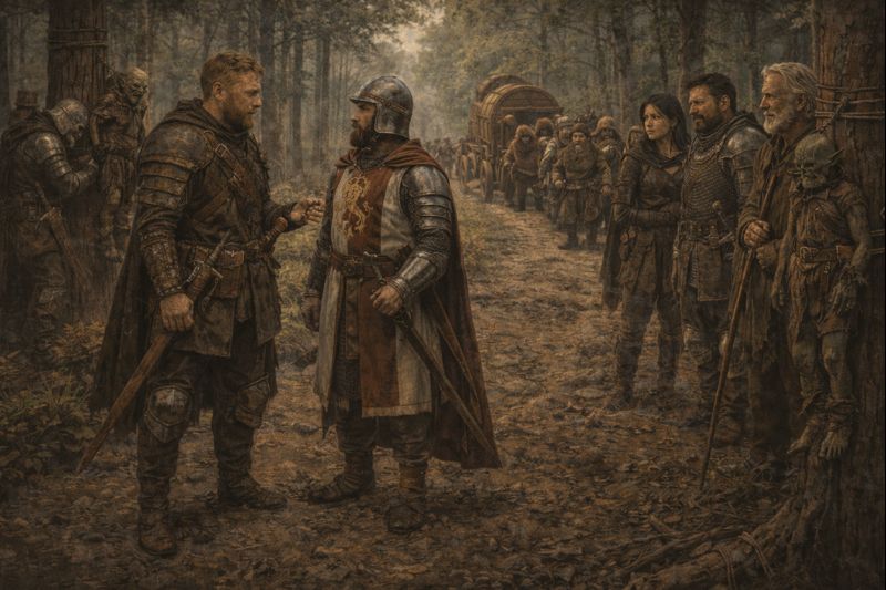 “Let’s check the Balanced Scales first, arrange lodging, then you can go talk to Alfred. I need to see Fenwick. Ronan? I guess you want to check in at the Scuffed Cuff, right?” The big man nods. “So, let’s just wait a bit before we split up.”