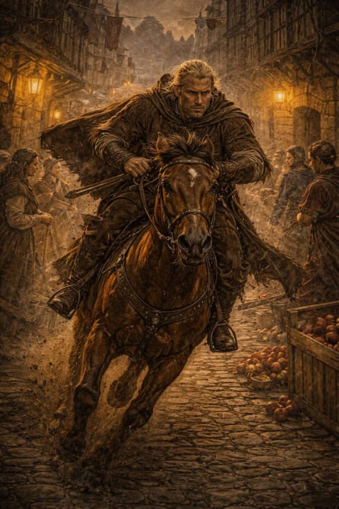 I rush through the city streets at a fast trot, people making way before the sound of hoofbeats lest they be trampled. Horses not being commonly ridden down city streets.