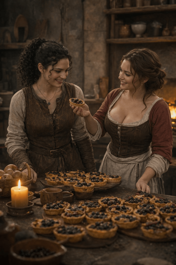 I nod as I start to eat. “Any more blackberry pies?” Casia asks eagerly. Mini smiles and points out the blackberry ones. The two talk excitedly about how fun it will be to at the market together, and how men will be, almost literally, eating out of their hands. I roll my eyes.