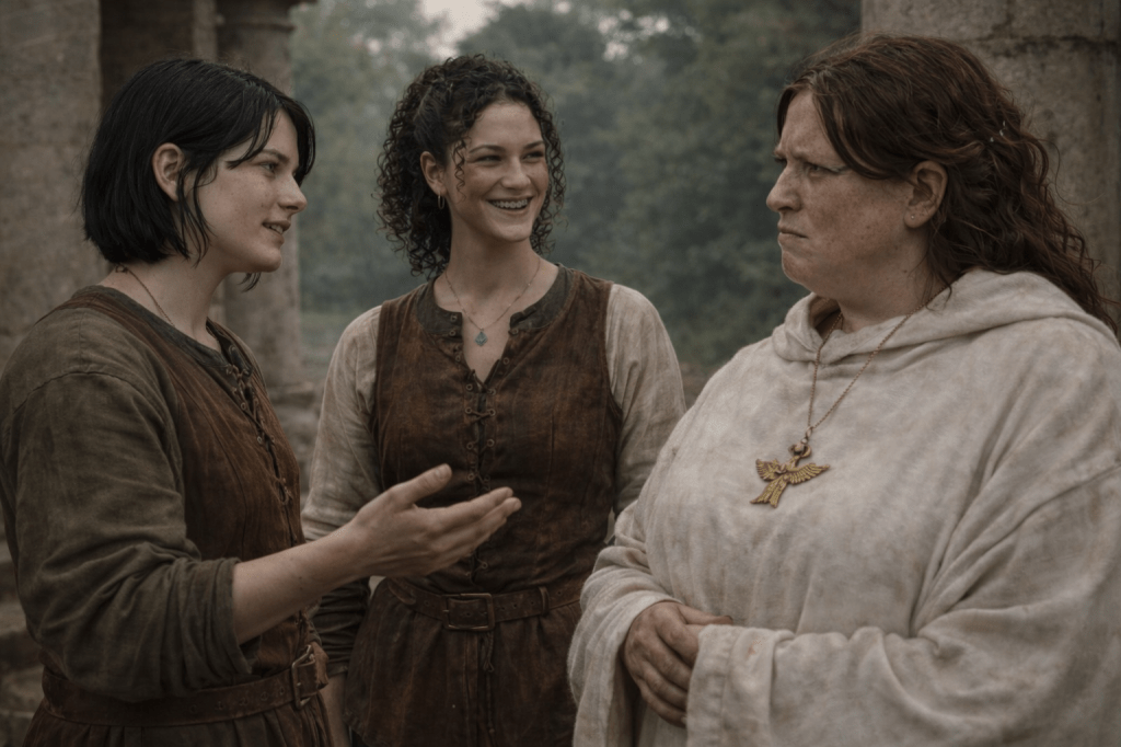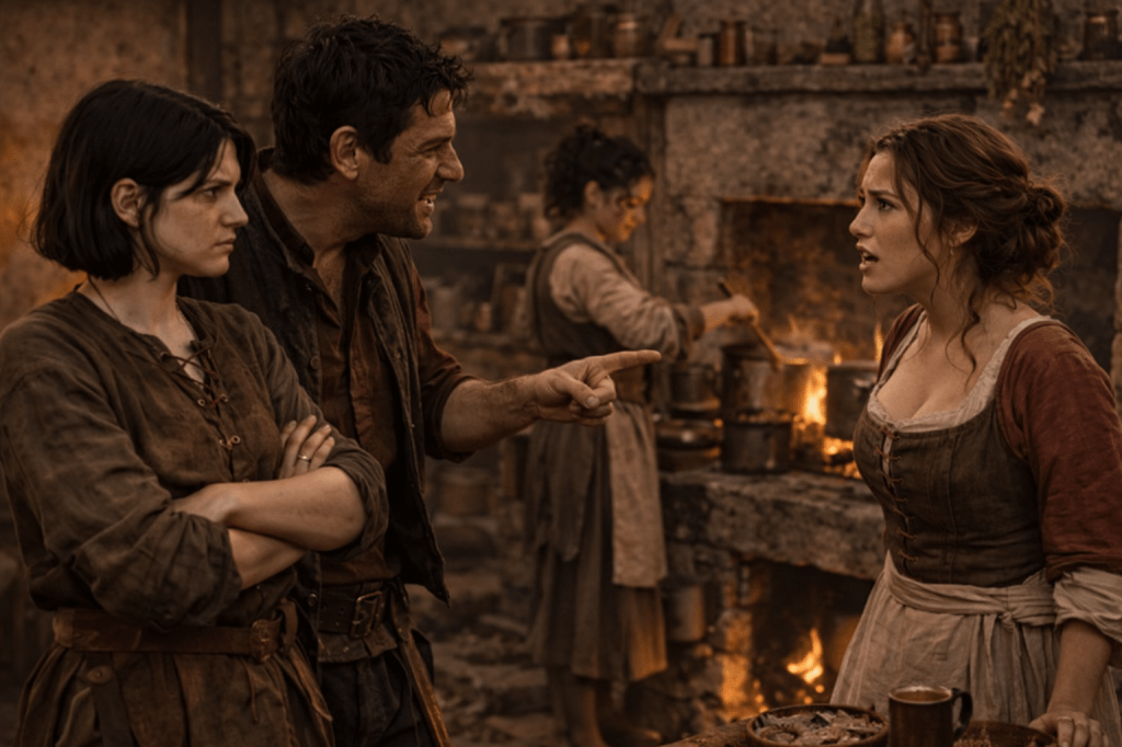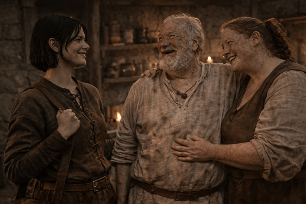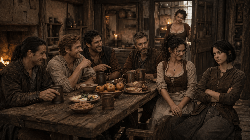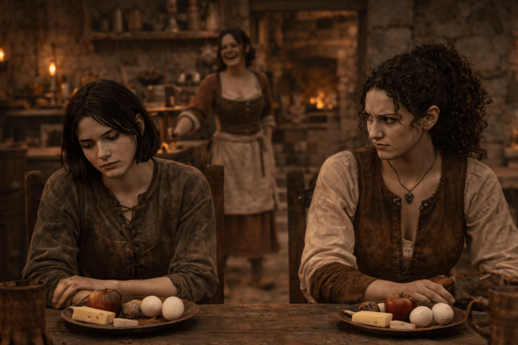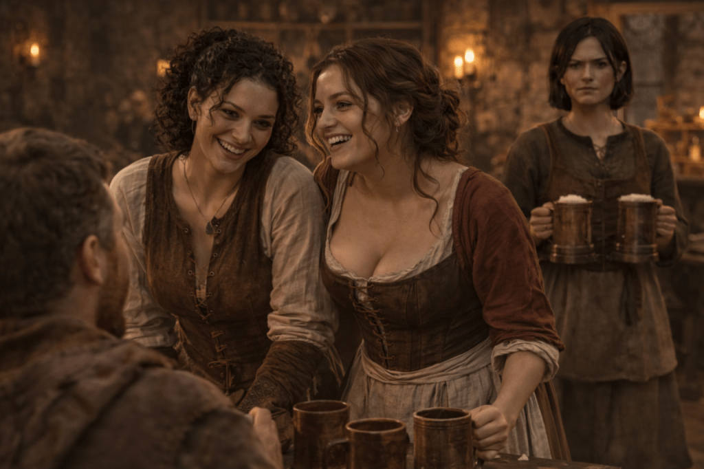 “Stop! Or we’ll never get breakfast!” she blushes, and as we head downstairs adds, “The final rounds are today. Alehouse will be packed again tonight. Then…tomorrow the lords head home. After that, you don’t have to stay out of the city!”