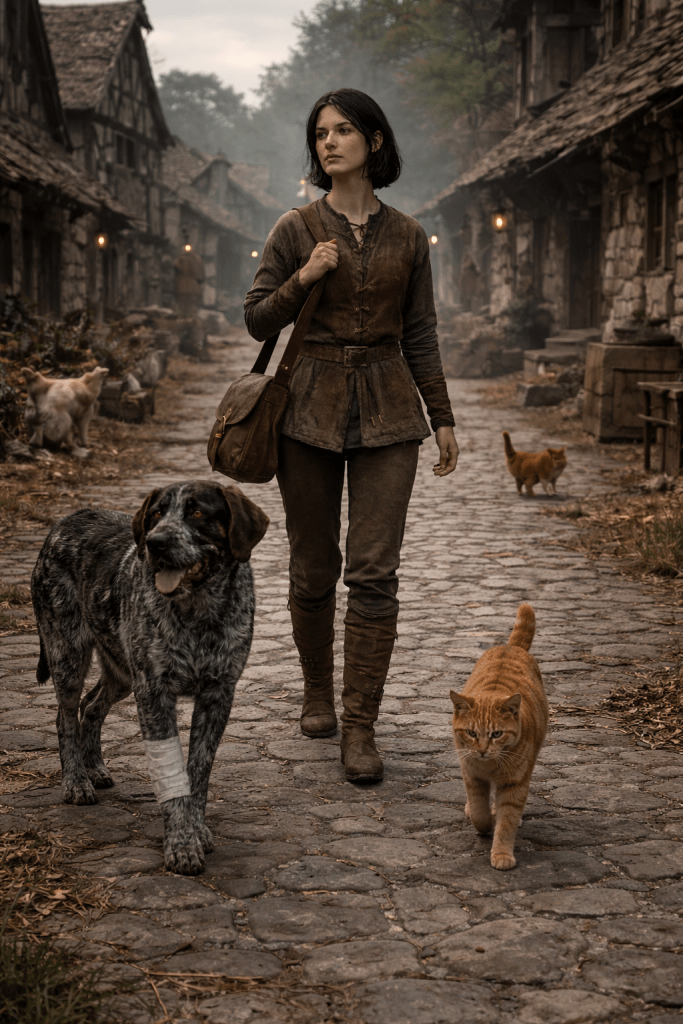 With all of the attention focused on the fourth day of the Tournament, the everyman’s day, I encounter hardly anyone on the streets this morning, and am soon beyond the city gates and into the village across the river. “Sit, Warren,” I warn the dog as I knock on Roslan’s door.