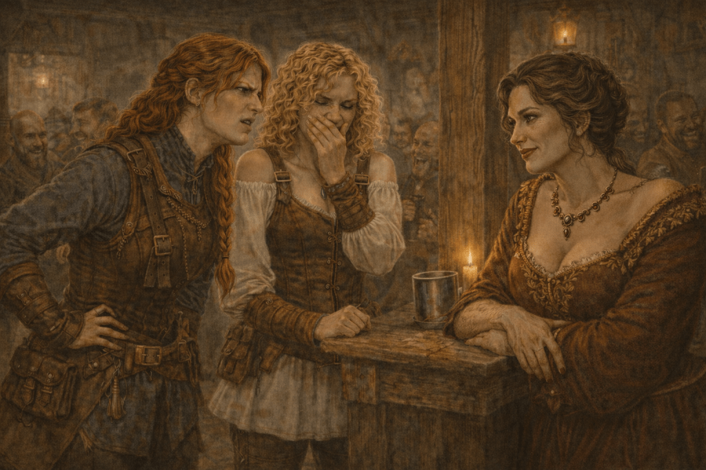 We arrive at the Devil’s Cup, and not seeing Karta, I ask Henna where I might find her. Instead of answering, Henna looks Eveline up and down, “If you’re looking for work, I’ve got room for another girl. But if you aren’t working for me, you aren’t welcome here.”