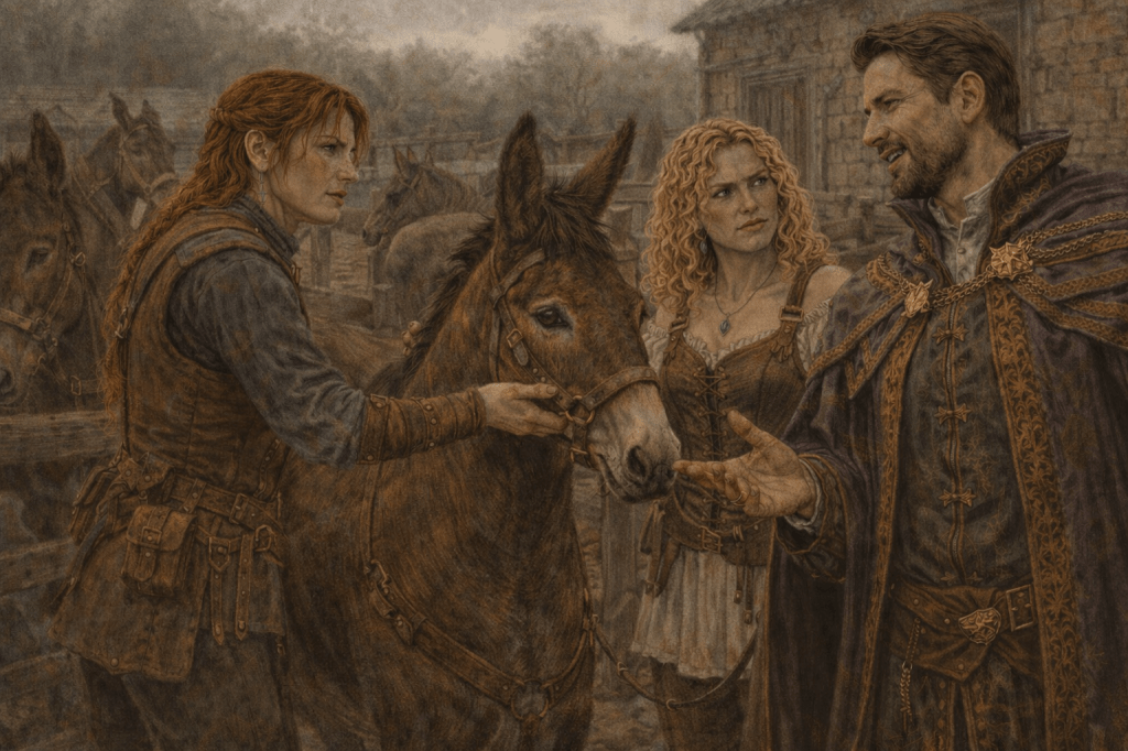 I roll my eyes, “Charming and sophisticated as always, Master Siward. I am in need of a pair of mules. Good, reliable animals, obedient, and not skittish.”