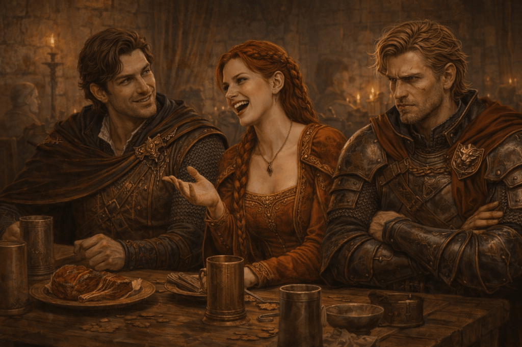 “Mind your wife,” Severon glares at Bertran, who nudges her.