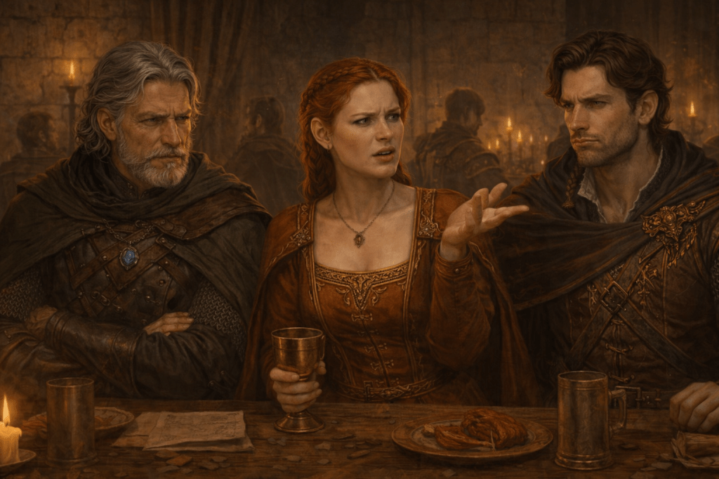 Verna smiles, “I think I like her already.” Erana and Othna glare at Bertran’s wife.