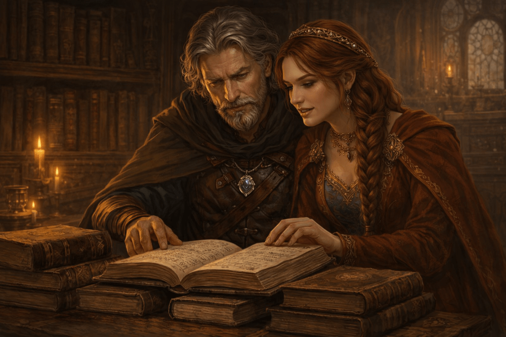 I set down at my appointed place, where Lord Warran is already seated to my left, waiting my arrival. “Yes father, nearly two hundred books remain at the site, which is held by kobolds. I recovered six tomes, but left the remainder behind.”