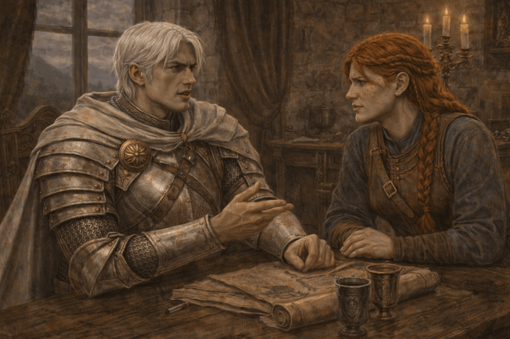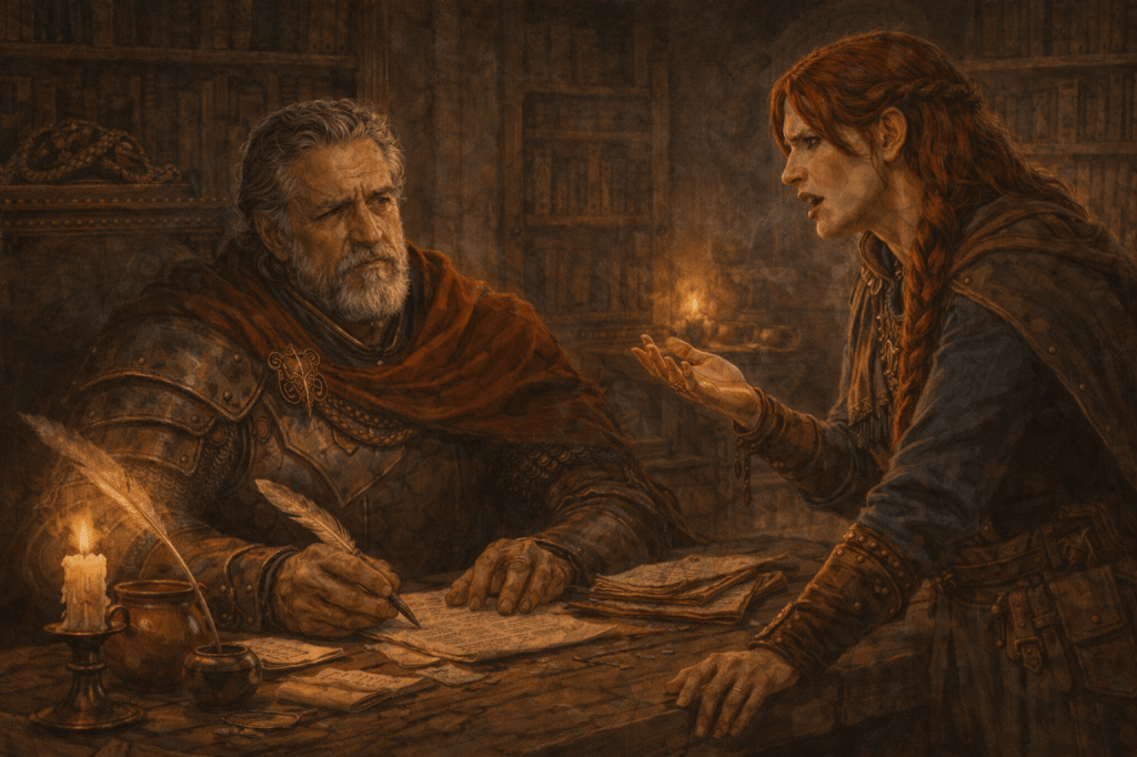 “Indeed, father. For my servant, Eveline, is a vessel arcane, and now fears for her life. And Muriel has already sought to have me banished. And she has slain a loyal servant to our house, and sundered our ties to others. She must be removed. Sent to Geildreth. May I deliver such a command myself?”