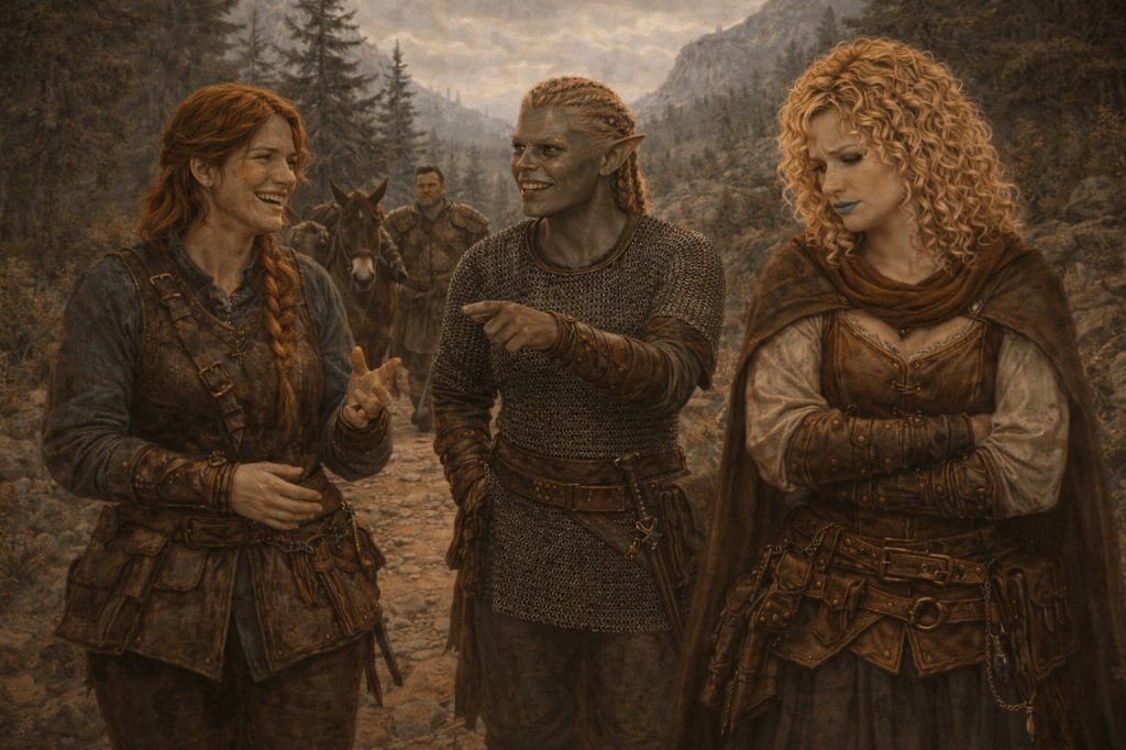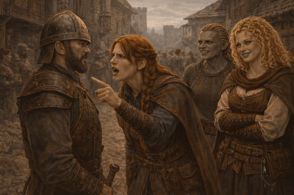 At the village gate are two of Varnath’s men, and two of my father’s. I tell one of Varnath’s men, “Let your lord know that Yseldra Faust is here and requires lodging for the night.” Then looking at my father’s man, “Who’s your sergeant in charge?”