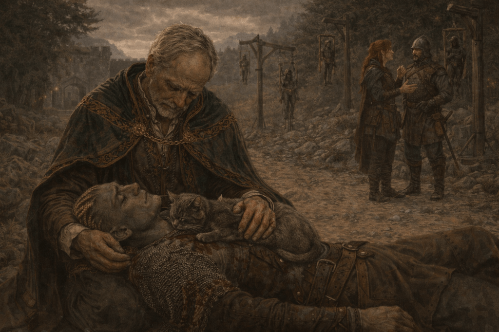 “Of course. You allowed his friend to be murdered. I ordered the guard to cut him down for proper burial, and let Aborath take his corpse,” I reply, coldly.